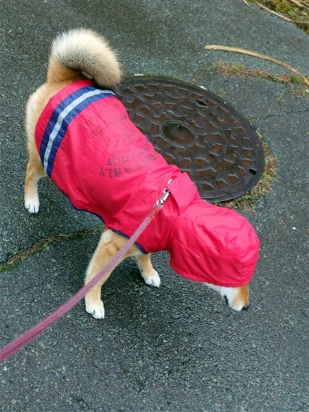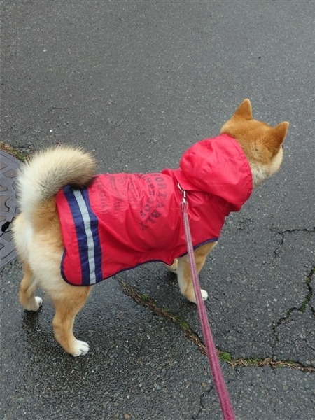 柴犬 レインコート(カッパ)を着れるようになったのはシニアだから?