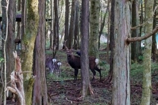 雄鹿の背中にカラスが乗っている。遭遇すると、大抵カラスが乗っていて、雄鹿がちょっと走るとカラスは背中から降りるけれど、追いかけて行ってまた乗っている。背中のダニや虫でも採っているのかもしれないけれど、なかなか楽しい絵だと思ったのでパチリ。