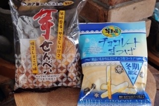 (*゚∋゚)のえさ? 冬季限定チョコレートまつば&芋せんべい焼きしょこら味