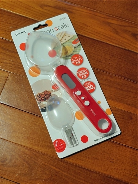 そんなごましゃんに、このあいだ試供品で購入したロイヤルカナン中型犬の子犬用ドックフードとカインズ新製品のドッグフード(ポイント還元で安くなっていた)を混ぜて500kcal/日を測るのを簡単にすべく、スプーン型スケールを購入してみた。