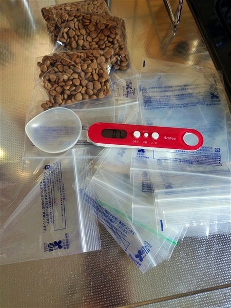 毎食のたびにいちいち計測するのは面倒なので、1食分ずつ小分けにしておこう。