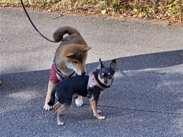 でも、ごましゃんは、子犬の頃から毎日一緒に散歩に行ったりしているので、(*゚∋゚)が仕事の時などは、二人でごましゃんを散歩に連れて行ってもらえるというメリットもある。