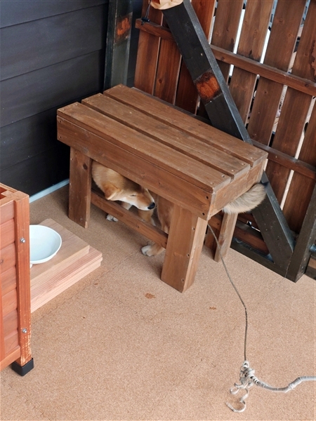 ベンチから円座を引きずり落としたようだ。