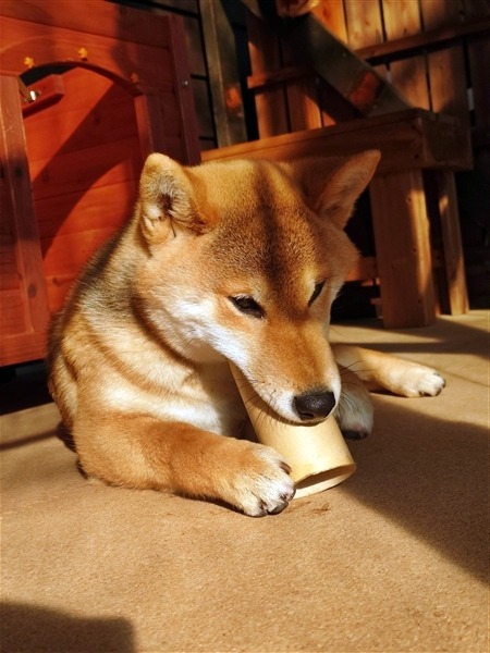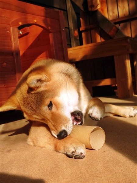 最近のお気に入りは、(*゚∋゚)とーちゃんがもってきてくれたラップの芯みたいなやつ。
