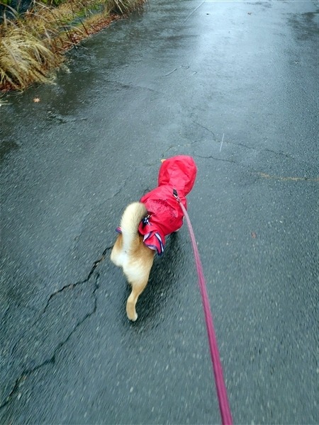 さて、遊び終わったら、雨の中、カッパをきて散歩に行きましょうか?
