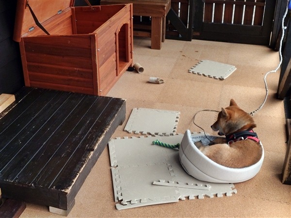 台の上からソフトマットが全部落とされて、クッションもコルクマットに・・・。