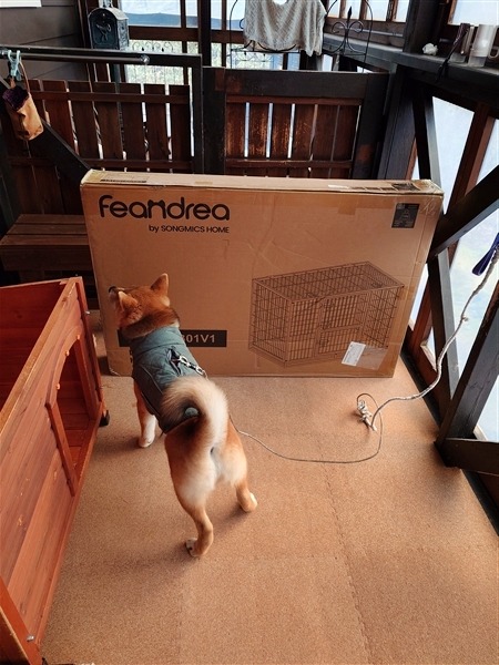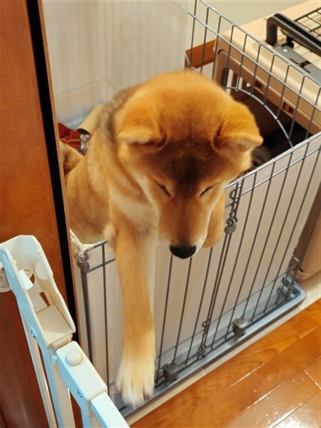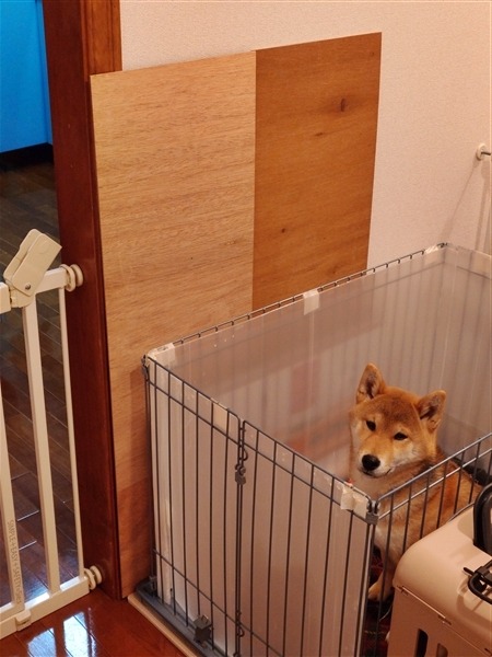 外にだすときは、こうやって、クレートをずらすだけなので、そのうち、力ずくで動かして出れてしまいそう。