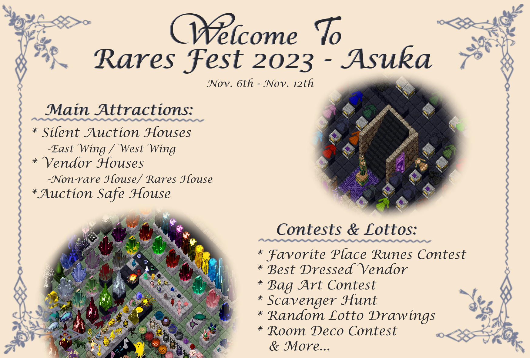 主なイベントの概要レアアイテムやEMイベントアイテムに特化したレンタルベンダーの貸出しレア以外も取り扱い可能なベンダーの貸出しゲーム内の掲示板を利用した展示販売形式のオークションやオークション金庫設置スペースの貸出し開催期間日本のタイムゾー...
